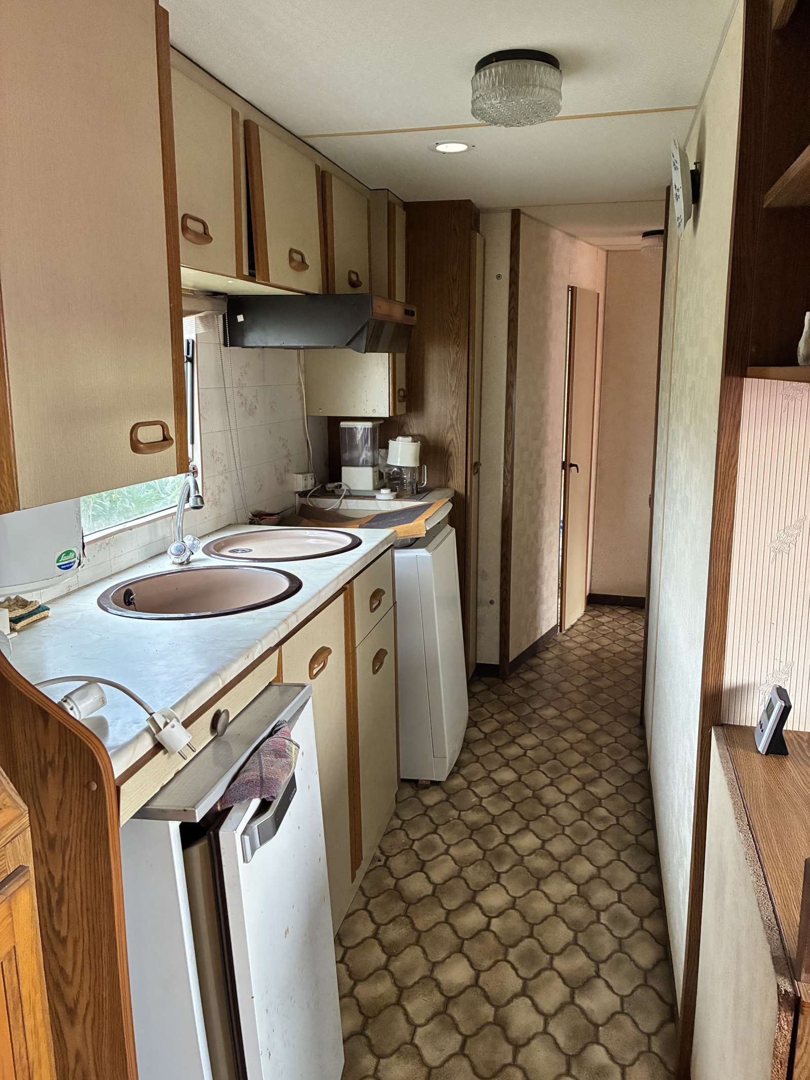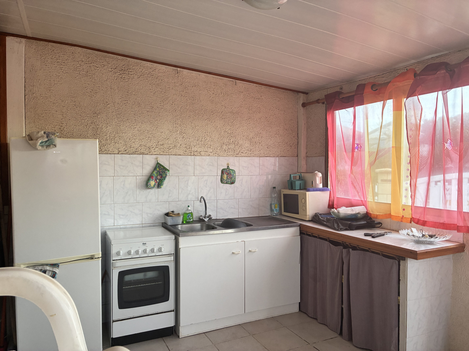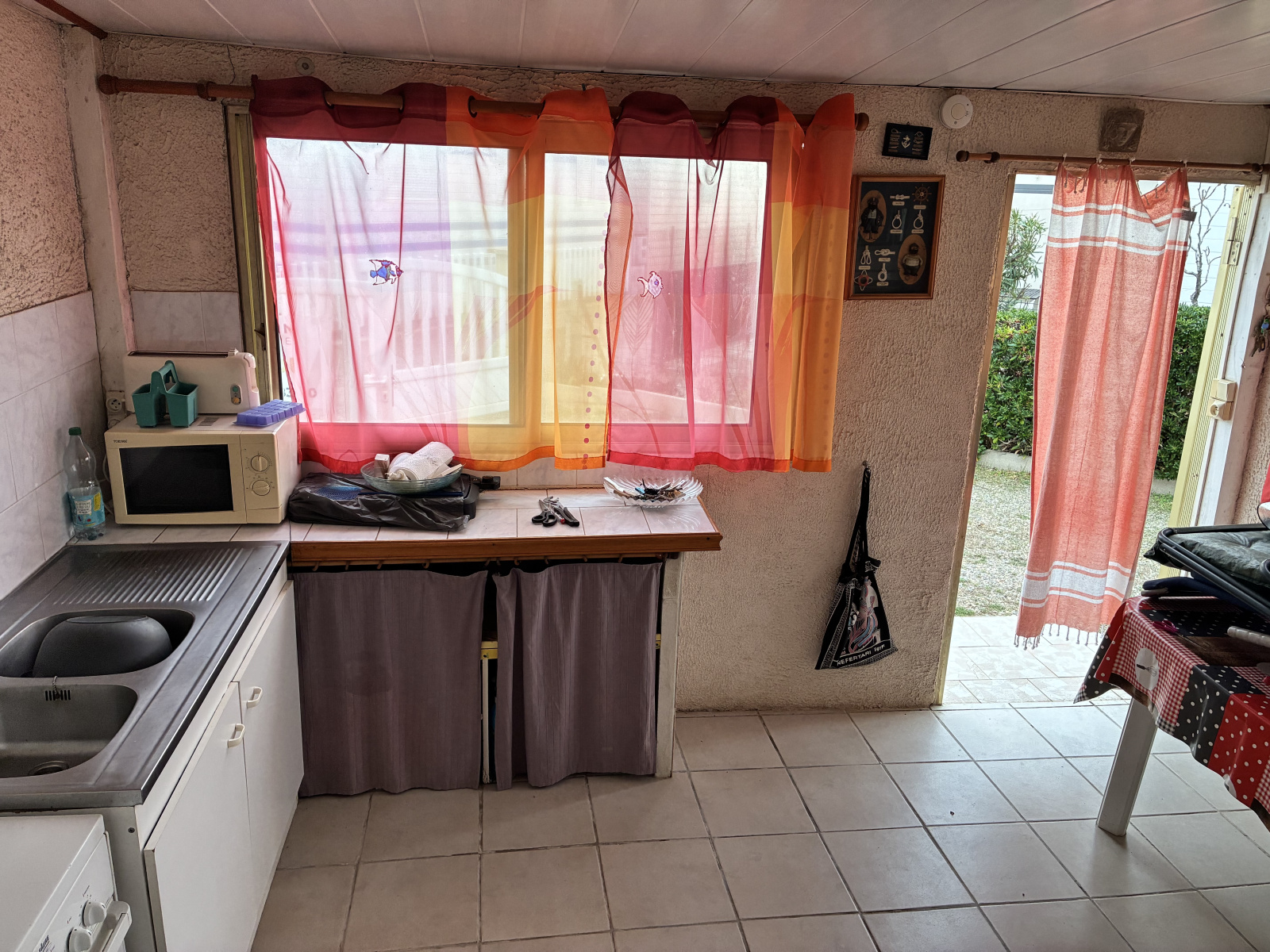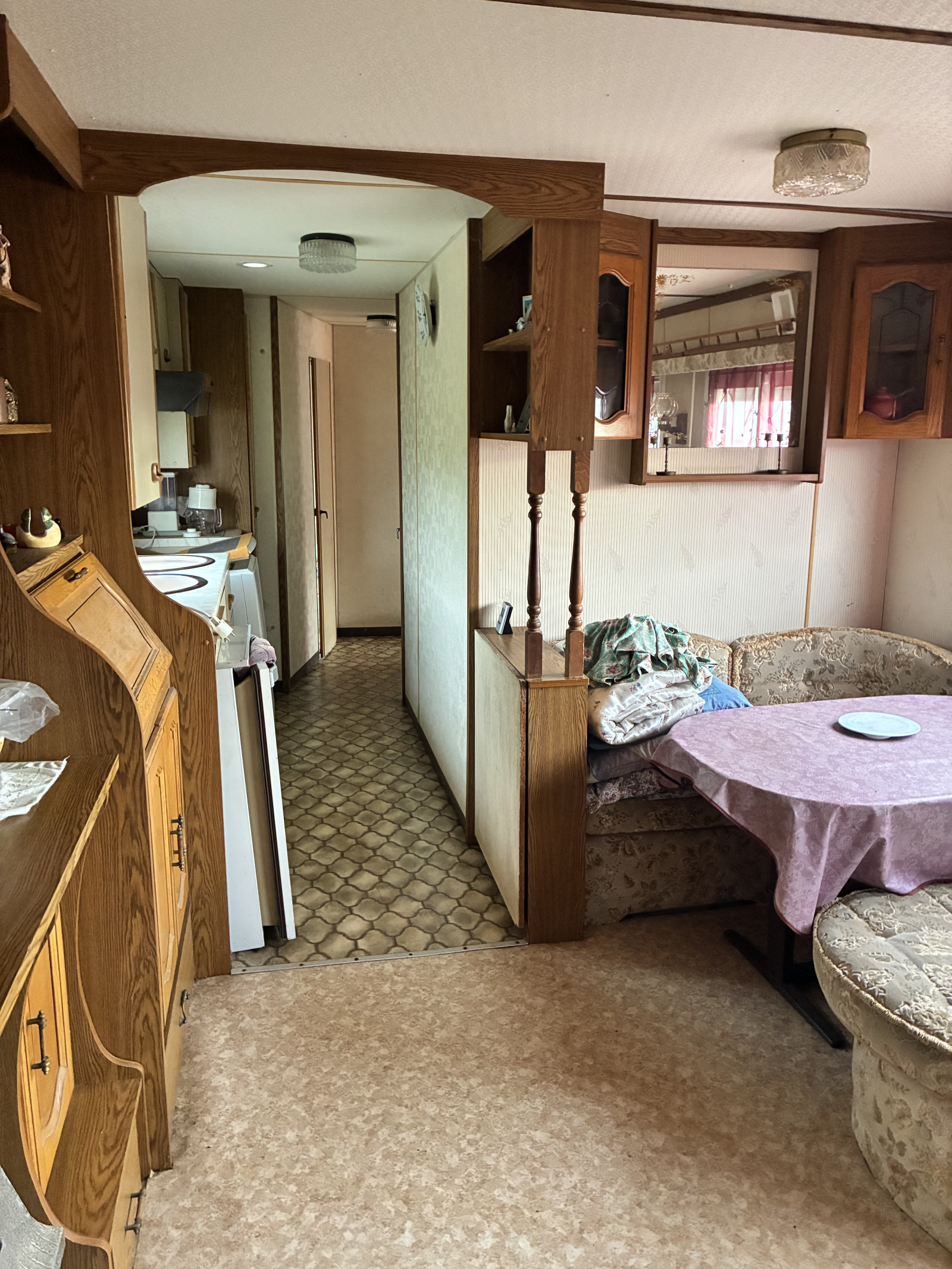 Il se compose d'une cuisine en dur avec coin repas, 2 chambres, un salon avec banquettes, une salle d'eau avec wc, clim réversible.
