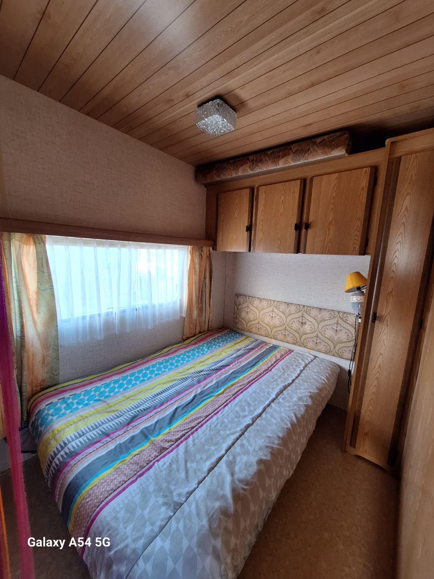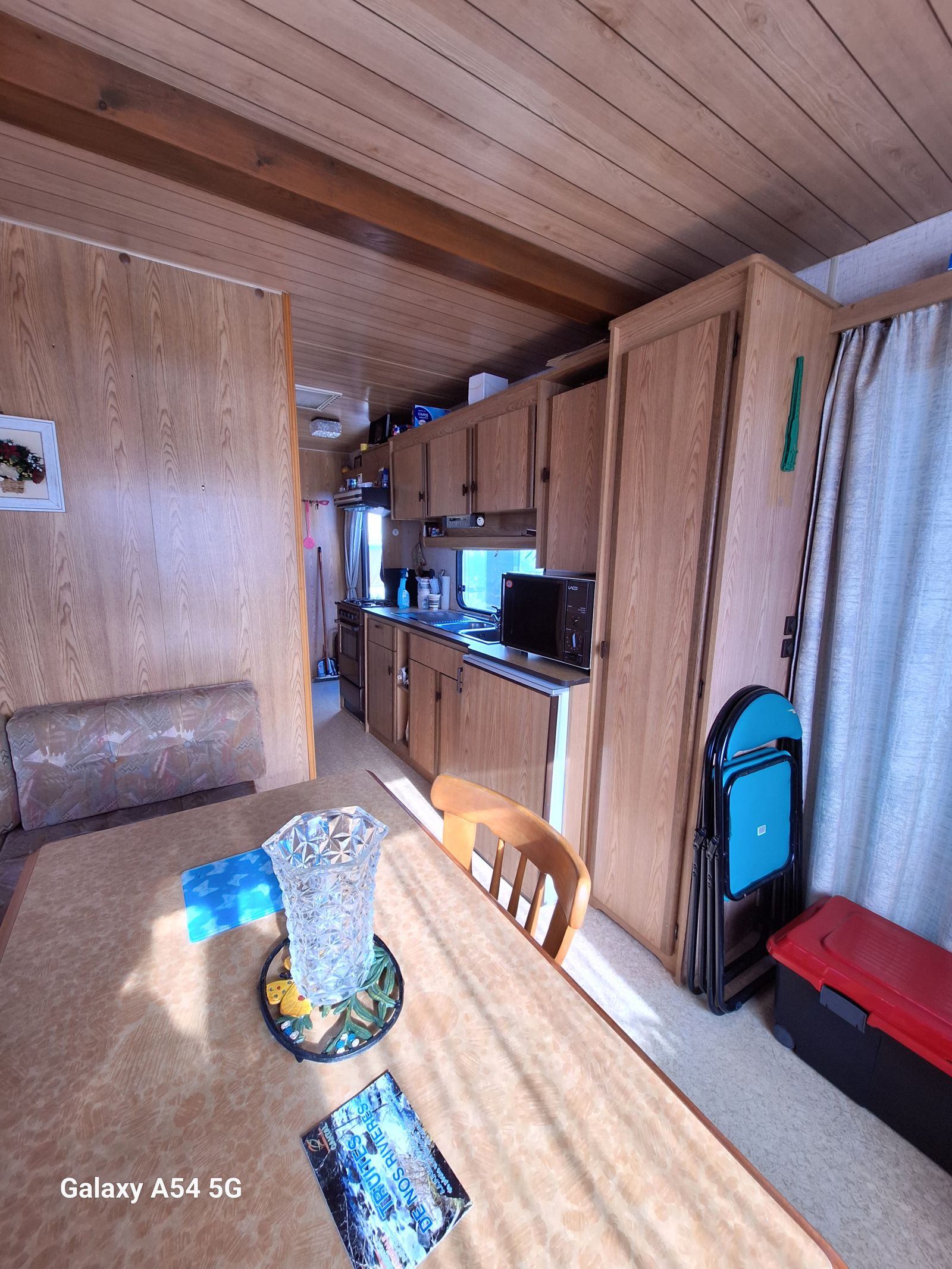 Mobil home se compose d'un espace séjour et cuisine, de 2 chambres, d'une salle de douche avec vasque et WC. La parcelle est clôturée, arborée et gravillonée.